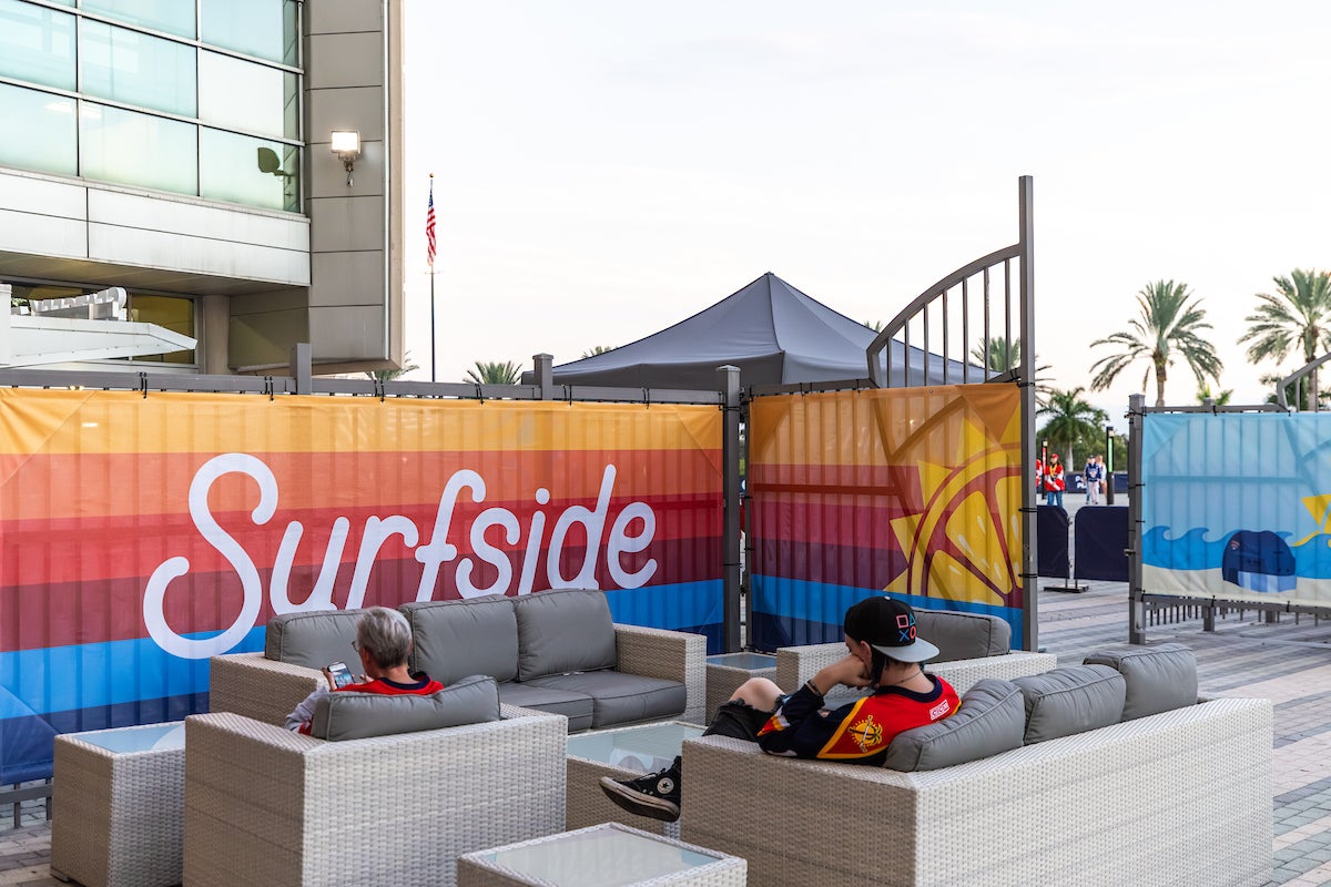 As part of the partnership with Surfside, the official ready-to-drink vodka beverage of Amerant Bank Arena, the Surfside Sundeck offers a vibrant, beach-inspired outdoor space where fans can kick back, socialize, and enjoy a refreshing drink.